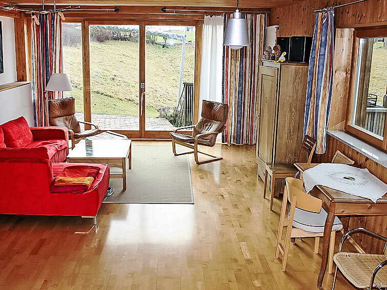 "große Winten", halfvrijstaand huis 5-kamers 160 m2 op 2 verdiepingen. Ruim en licht, gedeeltelijk afgeschuinde daken, modern en gezellig ingericht: groot woonkamer 50 m2 met bibliotheek, Sat-TV en radio. Uitgang naar het terras. Woonkeuken (oven, afwasmachine, 4 keramische glas kookplaten, magnetron, diepvriezer, grill, elektrische koffiemachine) met eethoek. Douche/WC. Bovenverdieping: 1 kamer met 1 2-pers bed (160 cm). 1 2-pers. kamer met 1 2-pers bed en 1 opklapbed. 1 kamer met 1 divanbed. Bad/bidet/WC, dubbele wastafels. Zolderverdieping: 1 kamer met 1 uitschuifbaar bed. Houtverwarming, verwarming met zonne-energie. Terras 20 m2. Terrasmeubelen, ligstoelen. Mooi uitzicht op het landschap en het bos. Ter beschikking: Internet (Internet (WiFi)). Niet rokers woning. Privé ingang.