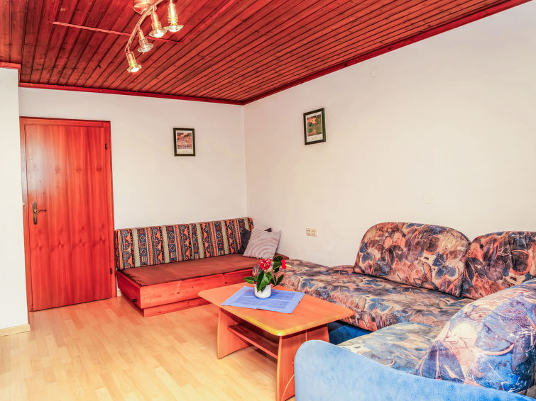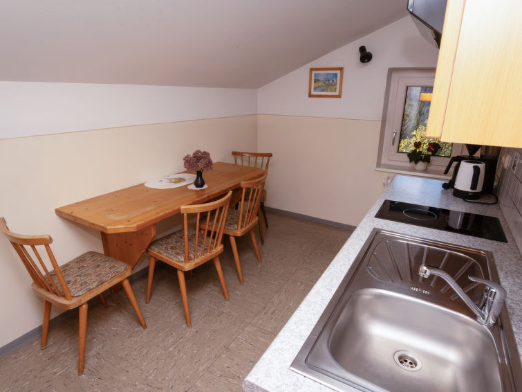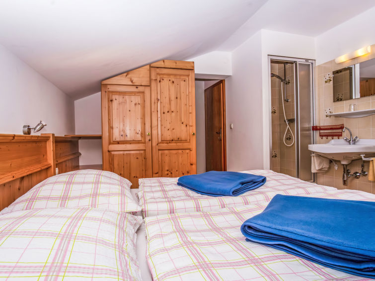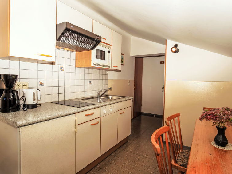 "Bischofsmütze", appartement 2-kamers 45 m2 op de 2e verdieping. Het objekt is geschikt voor 3 volwassenen. Rustiek en gezellig ingericht: hal. Woon-/slaapkamer 18 m2 met 1 2-pers divanbed, douche/WC en elektrische verwarming. Uitgang naar het balkon. 1 2-pers. kamer 16 m2 met 1 2-pers bed (180 cm, lengte 200 cm), douche/WC. Kleine keuken 8 m2 (2-pits kookplaat, oven, afwasmachine, elektrische koffiemachine). Balkonmeubilair. Zeer mooi uitzicht op de bergen en het landschap. Ter beschikking: Internet (WiFi, gratis). Parkeerplaats. 1 huisdier/hond toegestaan. 50407-000144-2020