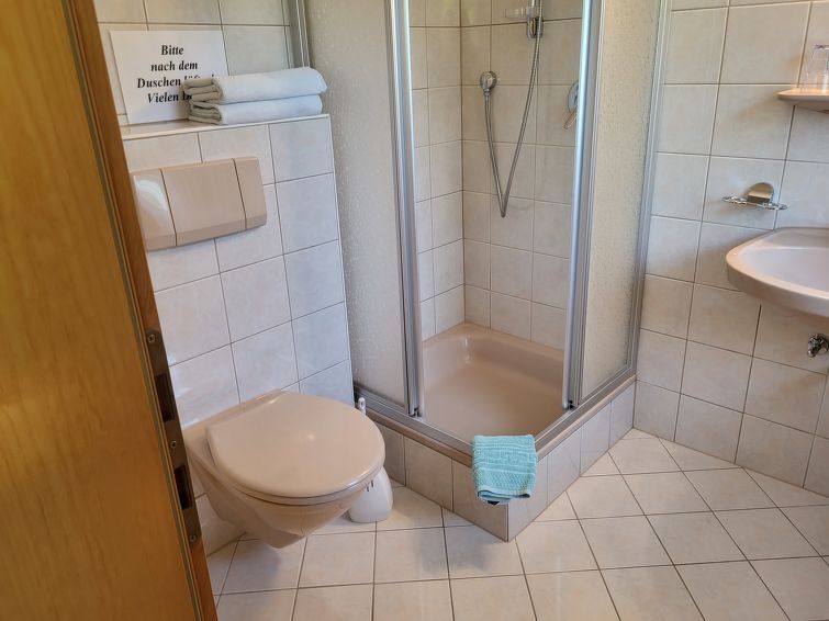 "Sonnenschein B", appartement 2-kamers 40 m2, souterrain. Het objekt is geschikt voor 2 volwassenen + 2 kinderen. Ruim en licht, comfortabel en gezellig ingericht: 1 2-pers. kamer. Woonkeuken (4-pits kookplaat, oven, afwasmachine, broodrooster, waterkoker, magnetron, elektrische koffiemachine) met 1 2-pers divanbed, eettafel en Sat-TV (Flatscreen TV). Douche/WC. Verwarming. Kleine zithoek in de tuin. Terrasmeubelen. Geschikt voor families. Niet rokers woning. Maximaal 1 huisdier/hond toegestaan. Privé ingang.