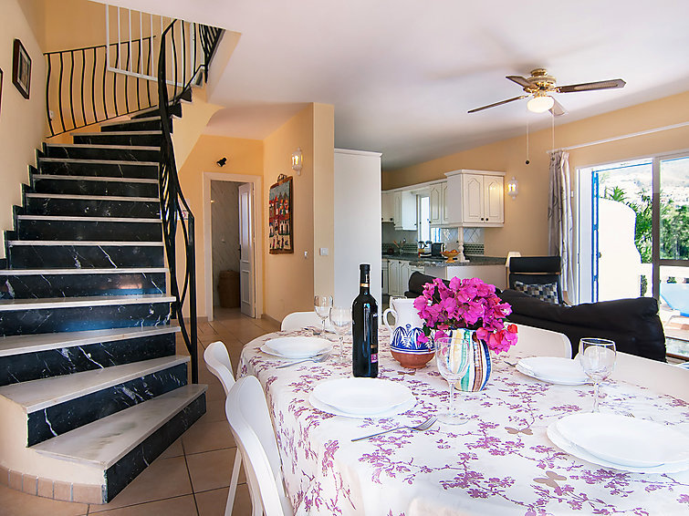 "Villa Pueblo Jara", villa 6-kamers 160 m2 op 3 verdiepingen. Doelmatig ingericht: woon-/eetkamer met eettafel, TV, Digitale TV, internationale TV-zenders, elektrische verwarming, air-conditioning en ventilator. Uitgang naar het terras. Groot keuken (4-pits kookplaat, oven, afwasmachine, broodrooster, waterkoker, magnetron, diepvriezer, elektrische koffiemachine). Douche/WC. Souterrain: 1 kamer met 2 bedden (90 cm, lengte 190 cm), air-conditioning en ventilator. 1 kamer met 1 2-pers bed (135 cm, lengte 190 cm), ventilator. Uitgang naar de zitplaats in de tuin, naar het zwembad. Open keuken (4-pits kookplaat, waterkoker, magnetron). Bad/WC. Bovenverdieping: 1 kamer met 2 bedden (90 cm, lengte 190 cm), air-conditioning en ventilator. 1 kamer met 1 bed (90 cm, lengte 190 cm), ventilator. 1 kamer met 1 2-pers bed (150 cm, lengte 190 cm), air-conditioning en ventilator. Uitgang naar het terras. Bad/bidet/WC. Groot terras, groot terras. Terrasmeubelen, barbecue, ligstoelen. Zeer mooi uitzicht op zee en de bergen. Ter beschikking: wasmachine, kluis, strijkijzer, kinderstoel, kinderbed tot 3 jaar, haardroger. Internet (WiFi, gratis). Appartement met onafhankelijke toegang gelegen op de begane grond, omgeven door een groot terras, naast de tuin en het zwembad. Er zijn twee slaapkamers, een met een tweepersoonsbed en een met twee eenpersoonsbedden. Er is ook een open keuken, een eettafel en een woonruimte. In het appartement is er een complete badkamer met wc/bad. Borg van 950 euro voor groepen onder de 25 jaar, deze moet contant betaald worden bij de overhandiging van de sleutels en teruggegeven worden op de dag van vertrek. VUT/MA/00159 // Reg. Nr.: ESFCTU0000290130002042360000000000000000VUT/MA/001598