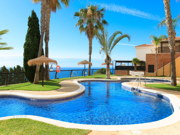 Almuñecar: Mooi, comfortabel flatgebouw "Belle Vue". Buiten de plaats, 2.5 km van het centrum van Almuñecar, 1.3 km van zee, 1.3 km van het strand, op het zuiden. Voor medegebruik: 2 zwembaden niervormig (seizoensgebonden beschikbaarheid: 01.Jan. - 31.Dec. en 01.Jul. - 31.Aug.). WC bij het zwembad, buitendouche. Winkel 1.3 km, levensmiddelenwinkel 2.5 km, supermarkt 2.5 km, winkelcentrum 18 km, restaurant 2.5 km, bar 2.5 km, bakkerij 1.3 km, café 2.5 km, voetgangersgebied 1.3 km, biertuin 2.5 km, bushalte 1.7 km, treinstation "Malaga" 75 km, veerboot "Motril" 24 km, kiezelstrand "Velilla" 2.5 km, duikschool 2 km. Jachthaven 9.2 km, jachthaven 9.2 km, golfterrein (18 holes) 1.6 km, surfschool 10 km, zeilschool 9.2 km, tennis 2.5 km, sportcentrum 2.5 km. Attracties in de buurt: Salobreña, Granada, Alpujarras, Nerja, La Herradura, Frigiliana. Bekende skigebieden kunnen gemakkelijk worden bereikt: Sierra Nevada. Wandelgebied Sierra Tejeda, Sierra Almijara. Auto noodzakelijk, geen lift. De eigenaar accepteert geen jeugdgroepen. Laden en lossen van de baggage is mogelijk bij het huis.