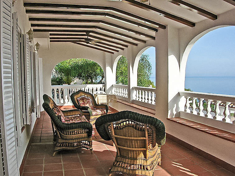 Huis 7-kamers 300 m2 op 2 verdiepingen. Comfortabel en mooi ingericht: woon-/eetkamer met open haard, Sat-TV, video, stereo-installatie, DVD, elektrische verwarming en air-conditioning. Uitgang naar het terras. 1 kamer met 1 2-pers bed en Sat-TV. Uitgang naar het terras. Keuken (4-pits kookplaat, oven, afwasmachine, magnetron, diepvriezer, grill). Douche/WC. Elektrische verwarming, air-conditioning. Bovenverdieping: 1 kamer met 1 2-pers bed, bad/bidet/WC en Sat-TV. Uitgang naar het terras. 1 kamer met 2 bedden (90 cm), bad/bidet/WC en Sat-TV. Uitgang naar het terras. 1 kamer met 2 bedden (90 cm), Sat-TV. Uitgang naar het terras. 1 kamer met 2 bedden (90 cm), bad/bidet/WC en Sat-TV. Uitgang naar het terras. 1 kamer met 1 2-pers bed en Sat-TV. Bad/bidet/WC. Elektrische verwarming, air-conditioning. 2 balkons 26 m2, terras 100 m2. Terrasmeubelen, barbecue, ligstoelen (6). Mooi panoramazicht op zee. Ter beschikking: wasmachine, kinderstoel, kinderbed. Internet (WiFi, gratis). Alle slaapkamers hebben uitzicht op zee. VFT/GR/01459
