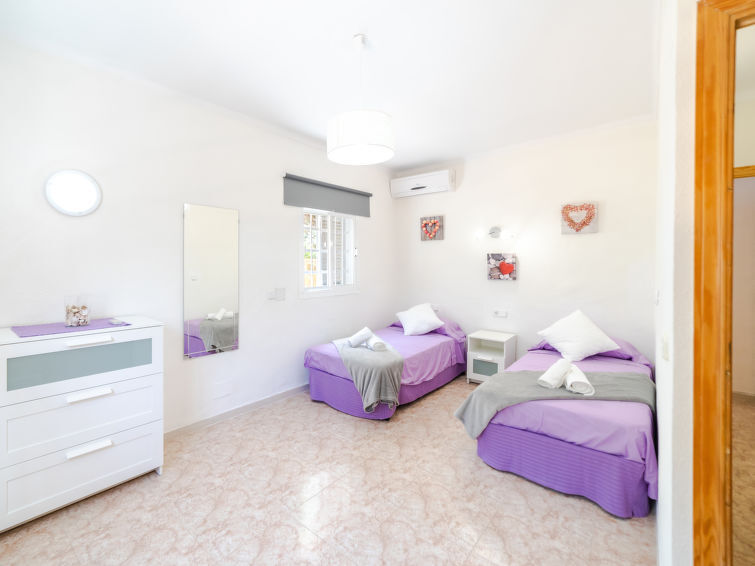 "Cala Santanyí Beach House JM", villa 6-kamers 150 m2 op 2 verdiepingen. Het objekt is geschikt voor 6 volwassenen. Zeer doelmatig en comfortabel ingericht: groot, open eetkamer met panoramavenster met eettafel. Uitgang naar de zitplaats in de tuin. Salon. Groot keuken (oven, afwasmachine, 3 keramische glas kookplaten, magnetron, diepvriezer, elektrische koffiemachine). Douche/WC. Bovenverdieping: woonkamer met panoramavenster met Sat-TV, Digitale TV, Flatscreen TV, DVD, air-conditioning en heteluchtverwarming. Uitgang naar het terras. 1 2-pers. kamer met panoramavenster met 1 2-pers bed (150 cm, lengte 190 cm), air-conditioning en heteluchtverwarming. 1 kamer met panoramavenster met 1 2-pers bed (135 cm, lengte 190 cm). 1 groot 2-pers. kamer met panoramavenster met 2 bedden (90 cm, lengte 190 cm), air-conditioning en heteluchtverwarming. Douche/WC. Groot balkon, ruime zithoek in de tuin, prieel. Terrasmeubelen, balkonmeubilair, barbecue, ligstoelen, loggia, zitgelegenheid, bergruimte. Uitzicht op het dal en de plaats. Ter beschikking: wasmachine, strijkijzer, kinderstoel, kinderbed, haardroger. Internet (WiFi, gratis). Parkeerplaats (overdekt, omheind). Geschikt voor families. Maximaal 1 huisdier/hond toegestaan. ETV13938
