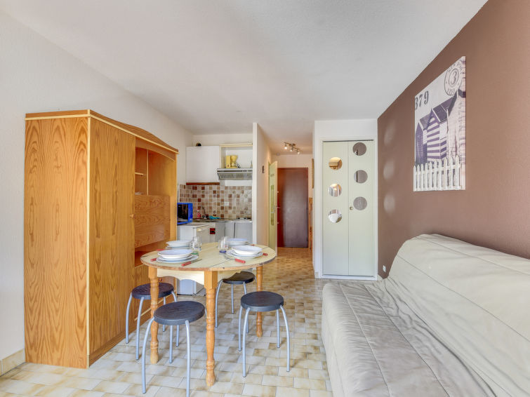 Residentie "La Frégate", van 3 verdiepingen. In de wijk la Plage Sud, 250 m van zee, 200 m van het strand. Openbare parkeerplaatsen 50 m in de straat. Winkel, levensmiddelenwinkel, winkelcentrum, restaurant 400 m, bushalte "Quai aux Fleurs" 400 m, treinstation 4 km, zandstrand "Plage Sud" 200 m, overdekt zwembad 4.4 km. Jachthaven 20 m, zeilschool 3 km, tennis 2 km, manege 4 km. Attracties in de buurt: Casino Flamingo 2.5 km, Seaquarium 2.5 km, Arènes du Grau du Roi 3.5 km, Aigues Mortes 10 km, La Grande-Motte 15 km, Nîmes 54 km. Wandelgebied Réserve Naturelle de Camargue. De sleuteloverdracht vindt plaats bij het agentschap Interhome in Port Camargue, 2 km. Vliegveld 25 km van het huis.