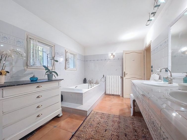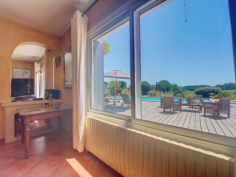 "Mas st Germain", huis 6-kamers. Ruim, zeer mooi ingericht: woonkamer met open haard (alleen decoratie), TV (Flatscreen TV), elektrische verwarming. Uitgang naar de tuin. 4 kamers, elke kamer heeft 1 2-pers bed (140 cm, lengte 190 cm). Groot keuken (1 kookplaat, oven, afwasmachine, 3 kookpitten (vlammen), waterkoker, magnetron, diepvriezer, elektrische koffiemachine). Uitgang naar de tuin. Badkamer, bad/douche, aparte WC. Bovenverdieping: 1 groot kinderkamer met 1 bed (80 cm, lengte 190 cm). Groot terras 100 m2. Terrasmeubelen, ligstoelen. Mooi uitzicht op het zwembad en de tuin. Ter beschikking: wasmachine. Internet (WiFi, gratis). Parkeerplaats (omheind). Rookmelders. Geen interne verbinding tussen de aparte wooneenheden. Aanbod door een particulier volgens art. 155, IV van CGI.