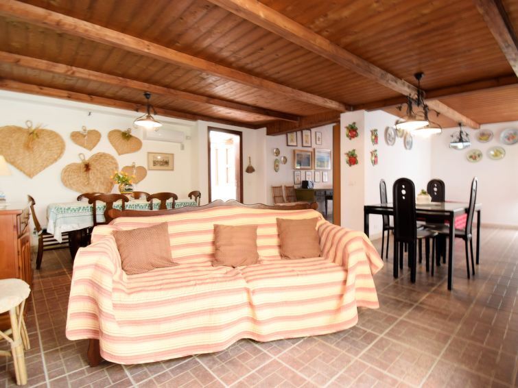 Huis 4-kamers 130 m2. Eenvoudig en doelmatig ingericht: groot woon-/eetkamer met 1 slaapplaats en TV (Flatscreen TV), air-conditioning en heteluchtverwarming. Uitgang naar het terras. Woonkamer met open haard. Uitgang naar het terras. Kleine doorgangskamer met 1 2-pers bed en ventilator. 1 kleine 2-pers. kamer met air-conditioning en heteluchtverwarming. 1 kleine kamer met 1 bed en ventilator. Kookhoek (5-pits kookplaat, oven, broodrooster, waterkoker, magnetron) met eettafel. Uitgang naar het terras. Douche/bidet/WC. Verwarming, houtverwarming (extra), air-conditioning, heteluchtverwarming (extra), boiler (80 liter). Verwarming alleen beschikbaar van 01.12. tot 31.03, Verwarming niet in alle ruimtes. Groot terras 100 m2 gedeeltelijk overdekt, 2 terrassen 25 m2. Terrasmeubelen, barbecue. Beperkt uitzicht op zee. Ter beschikking: wasmachine, strijkijzer, klamboe, kinderstoel, kinderbed tot 2 jaar, haardroger. Internet (WiFi, gratis). Parkeerplaats (2 Auto's). Maximaal 1 huisdier/hond toegestaan. IT088006C26CJEZMHB