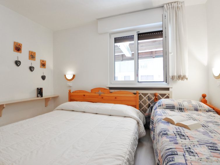 Appartement 2-kamers 45 m2 op de 2e verdieping. Doelmatig en comfortabel ingericht: woon-/eetkamer met 1 2-pers divanbed, eettafel en TV (Flatscreen TV). Uitgang naar het balkon. 1 2-pers. kamer. Kookhoek (4-pits kookplaat, oven, afwasmachine, magnetron). Douche/bidet/WC. Boiler. Balkon. Bergruimte. Uitzicht op de bergen en het dal. Ter beschikking: wasmachine, haardroger. Internet (Internet (WiFi), gratis). Garage. Geschikt voor families. Niet rokers woning. Brandblusser, geen lift. IT022036C2Q2A2W9P6