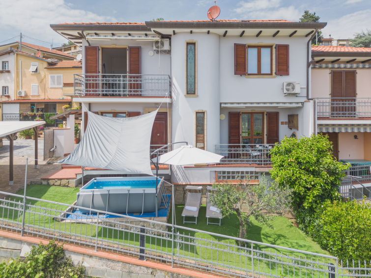 "Casa Lorena", halfvrijstaand huis 4-kamers 140 m2, op de begane grond. Ruim en licht, volledig gerenoveerd, zeer comfortabel en modern ingericht: woonkamer met TV (Flatscreen TV). Uitgang naar de tuin, naar het zwembad. Open keuken (5-pits kookplaat, oven, Gasfornuis, broodrooster, waterkoker, elektrische koffiemachine) met eettafel. Uitgang naar het terras. Douche/bidet/WC. Gas-verwarming, air-conditioning. Verwarming alleen beschikbaar van 01.11. tot 15.04. Souterrain: groot woon-/eetkamer met 1 2-pers divanbed en open haard (alleen decoratie), eettafel, kookhoek en TV (Flatscreen TV). Bovenverdieping: 2 2-pers. kamers, elke kamer heeft air-conditioning. Uitgang naar het balkon. Douche/bidet/WC. Klein terras, kleine tuin. Terrasmeubelen, barbecue (verrijdbaar), ligstoelen, zitgelegenheid. Zeer mooi panoramazicht op zee en het dal. Ter beschikking: wasmachine, droger, strijkijzer, haardroger. Internet (Internet (WiFi), gratis). Parkeerplaats (overdekt, omheind, 1 Auto). Geschikt voor families. Rookvrij huis. Rookmelders, brandblusser. IT046018C2IVD8GYP9